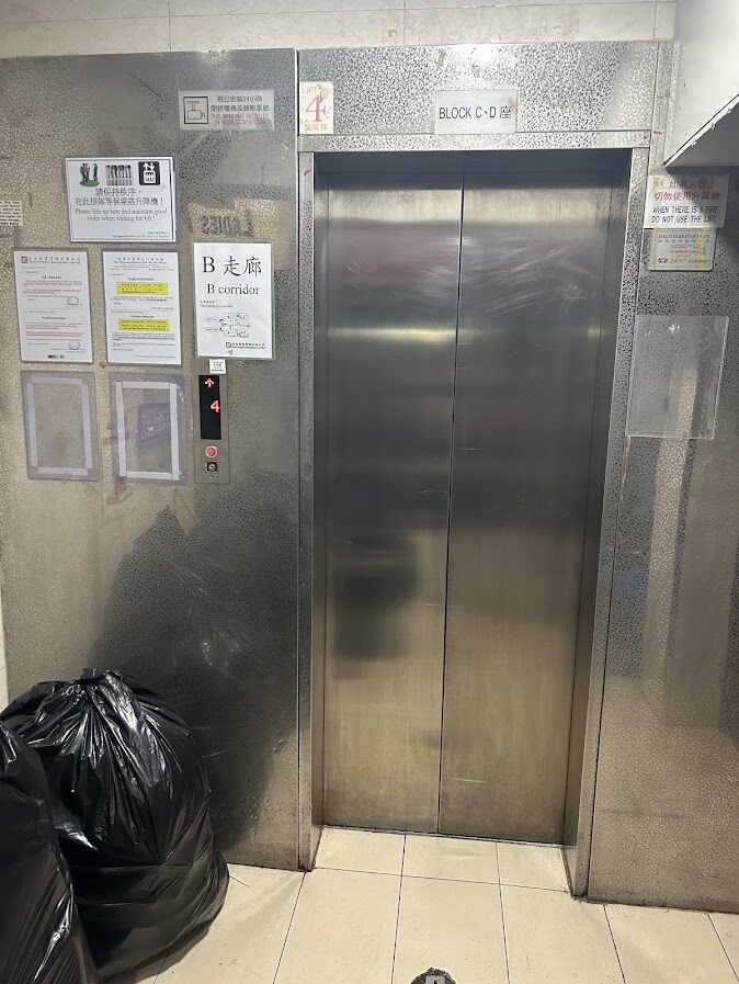 やっと見つけたエレベーター(の横にもごみ袋・・・)