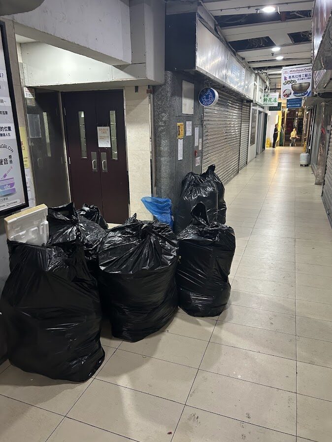通路は狭く、ごみ袋が大量に置かれた廊下を進みました。