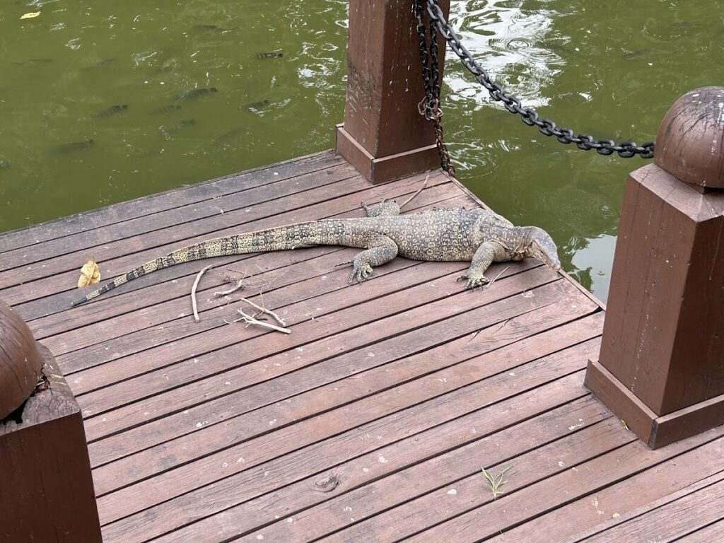 小さめの池には大きなトカゲがいました!ミズオオトカゲくん。