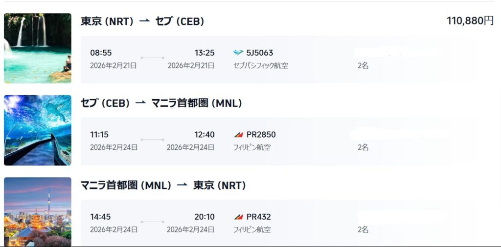 セブ島は時期・時間によっては往復1人3万円台で行くこともできます。
